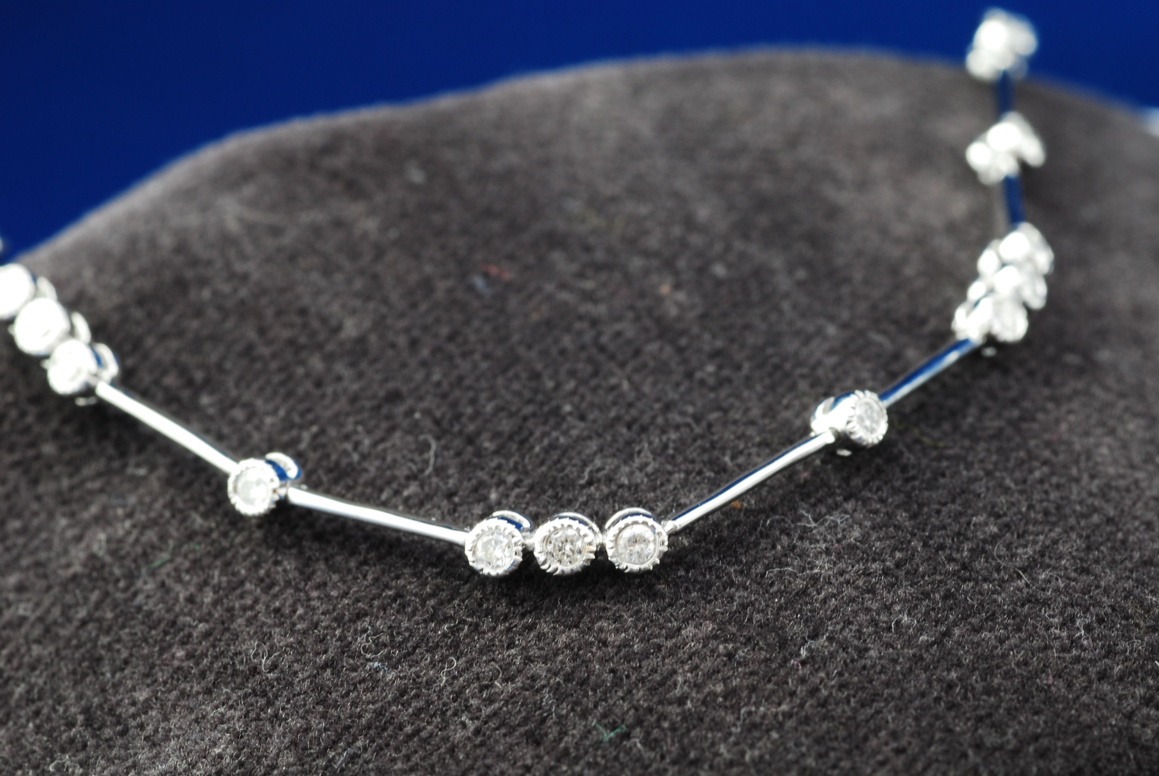 2085 K18 ダイヤモンド 5.0ct 18cm 398,000円 1周ダイヤモンドの豪華な作り 1粒ずつが大きい5ct 2086 WG(K18) ダイヤモンド 0.35ct 18cm 89,800円 ダイヤがステーションタイプの ブレスレット 2087 WG(K18) ダイヤモンド 3.001ct 19cm 398,000円 流行のないデザイン どんなシーンにも合います